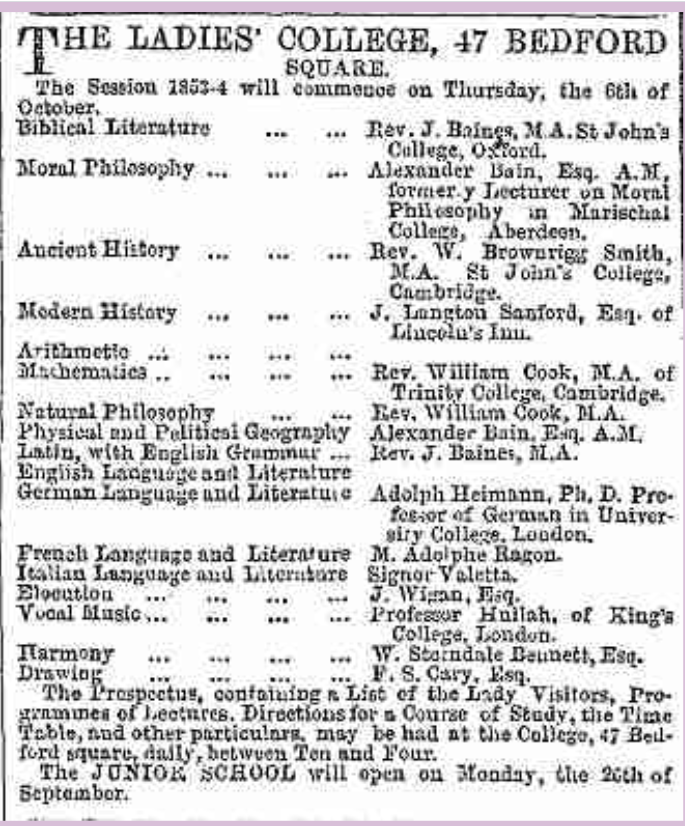 Once I had the basic outline for the story it wasn’t too difficult to choose where Esther would attend school. I needed her to be able to visit Hyde Park and, given her distrust of men, it seemed logical that she would attend a women’s college. The Bedford College for Women in London was perfect.